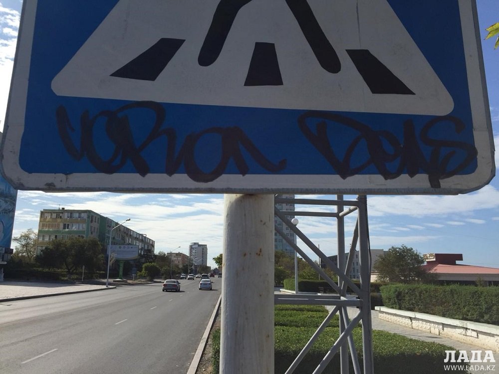 Личность парня, который рисовал на дорожных знаках, была установлена полицейскими Актау. Им оказался тот же молодой человек, который «разукрасил» и городской торговый центр.