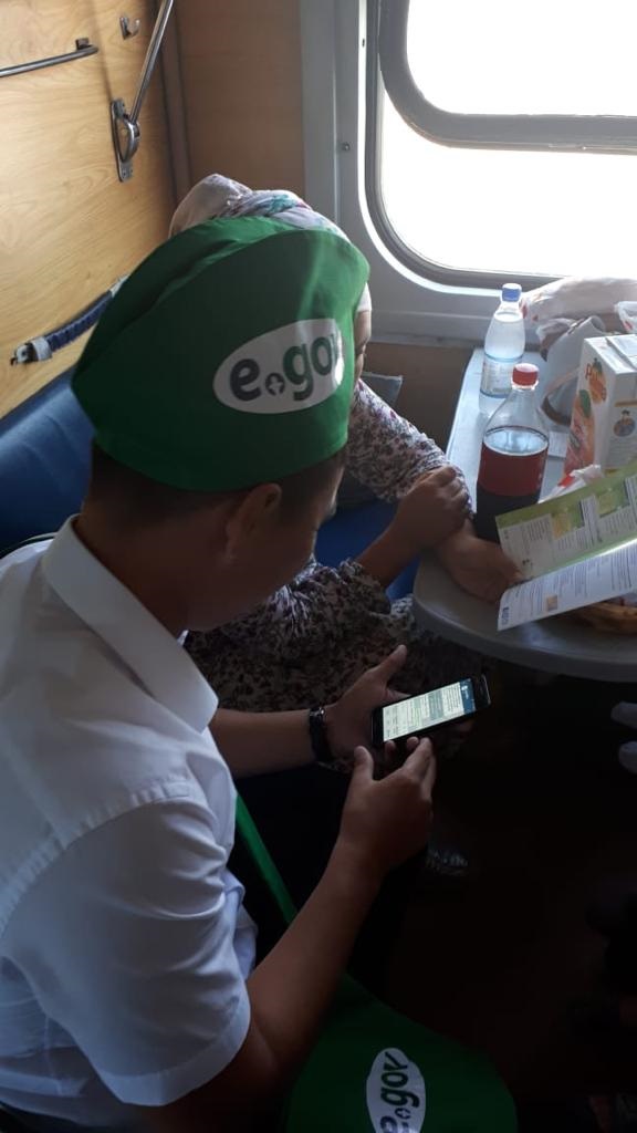 Сотрудники ЦОНа предлагали каждому входящему в вагон пассажиру получить государственные услуги или пройти регистрацию в базе мобильных граждан, что позволит пользователям самостоятельно получать более 50 популярных государственных услуг при помощи смс-пароля.