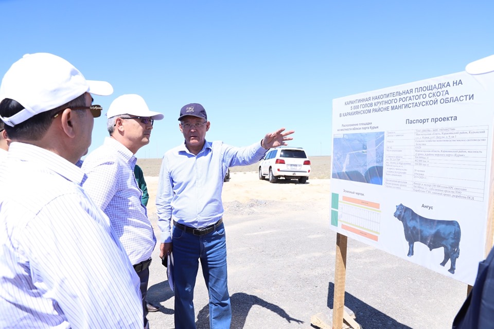 Аким Мангистауской области Серикбай Трумов посетил с рабочим визитом Каракиянский район и ознакомился с ходом работ нескольких сельскохозяйственных объектов. Первым местом, которое посетил глава региона, стал объект «Карантинная накопительная площадка на пять тысяч голов крупного рогатого скота».
