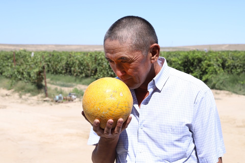 Глава региона также посетил ферму Жаксылыка Ибадуллаева. Здесь на земельном участке площадью 32 гектара выращивают яблоки, виноград, помидоры, огурцы, баклажаны, арбузы и дыни. По словам садовода, его овощи и фрукты пользуются спросом среди жителей аулов из разных районов и города Актау.