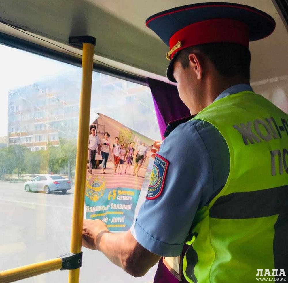 Также в целях пропаганды по городу и в общественном транспорте полицейские расклеивают плакаты.
