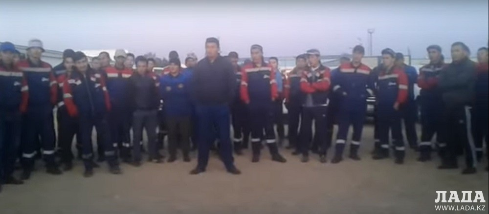 появилось видео забастовки рабочих на одном из месторождений в Мангистау.