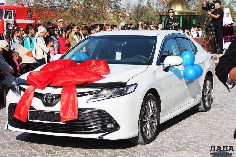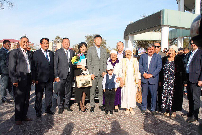 Во время поздравлений аким Жанаозена Максат Ибагаров и управляющий директор по транспорту акционерного общества «Озенмунайгаз» Айткали Башенов вручили новоиспеченному чемпиону ключи от Toyota Camry XV70.