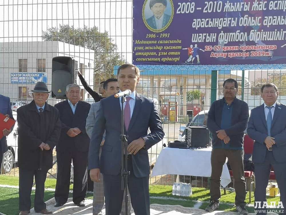 Игровое поле построено в рамках программы «Болашаққа бағдар: Рухани жаңғыру» при поддержке местного предпринимателя Калыма Дербесова. В торжественном открытии принял участие аким Актау Галымжан Ниязов.