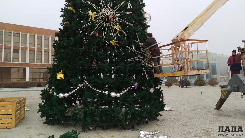 Украшать новогоднюю ёлку начали на площади «Астана» в 4 микрорайоне сегодня, 19 декабря.
