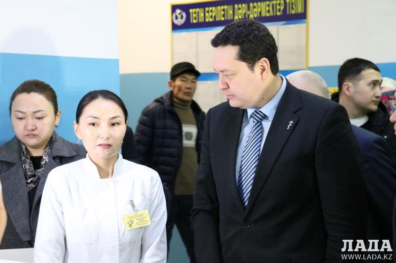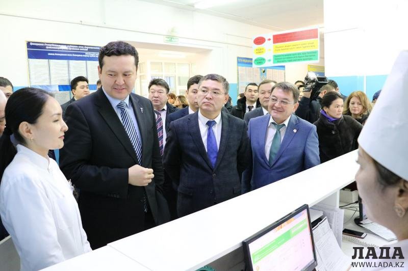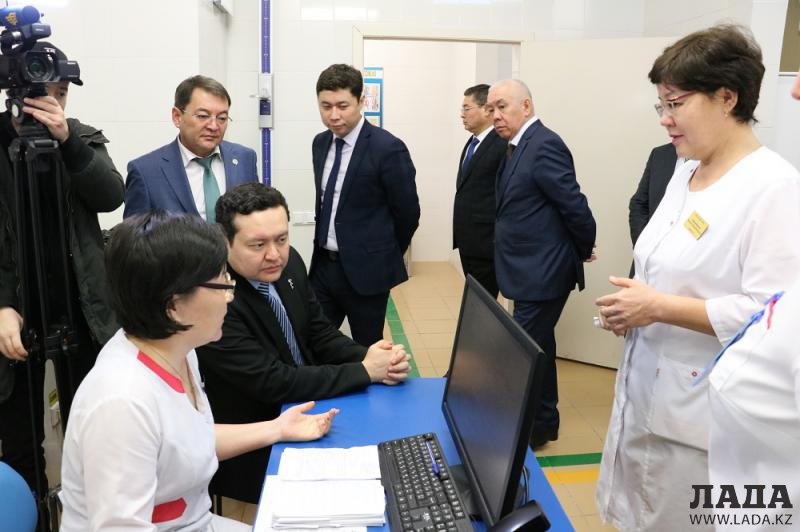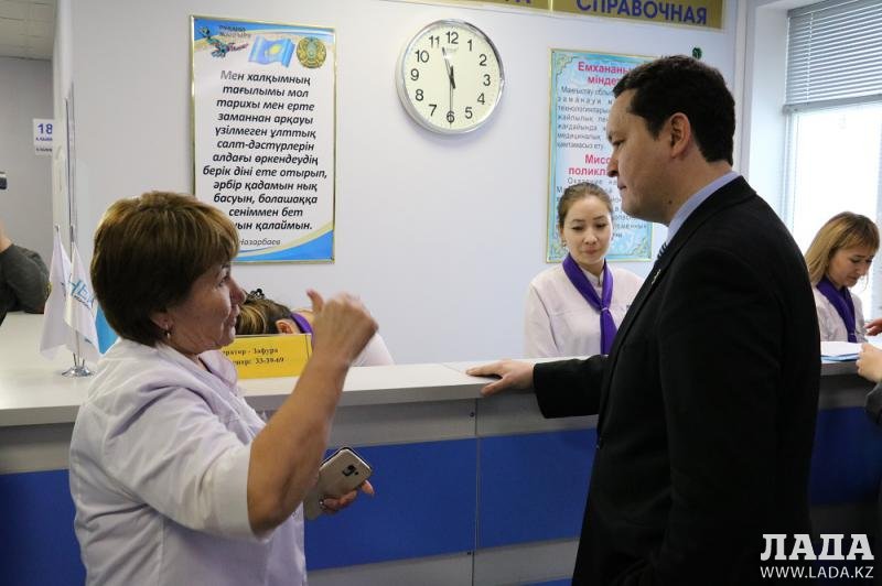 Рабочая поездка началась с посещения Мунайлинской районной поликлиники. На сегодняшний день медицинская организация, рассчитанная на 250 приёмов, обслуживает 117 000 человек из числа прикрепленного населения. В прошедшем году медицинские услуги здесь получили 378 149 жителей. До настоящего времени не определен статус 1 877 человек. По словам руководства поликлиники, многие жители не живут по месту прописки, либо переехали из района. В введении поликлиники находятся семь врачебных амбулаторий и четыре первичных медико-санитарных центров.