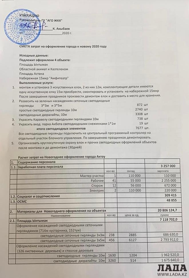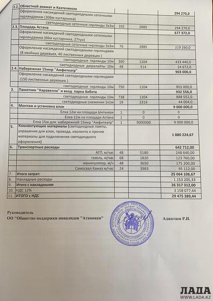 Акимат Актау объявлял тендер на украшение города к Новому году на 37 миллионов тенге. Предложив потратить на эти цели чуть больше 26 миллионов тенге, конкурс выиграло общественное объединение «Общество поддержки инвалидов Атамекен». К слову, об этом актауском обществе в интернете нет никакой информации.