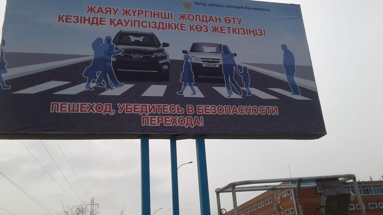 Управлением полиции Актау были установлены билборды, призывающие водителей быть внимательными на дороге и соблюдать правила дорожного движения.