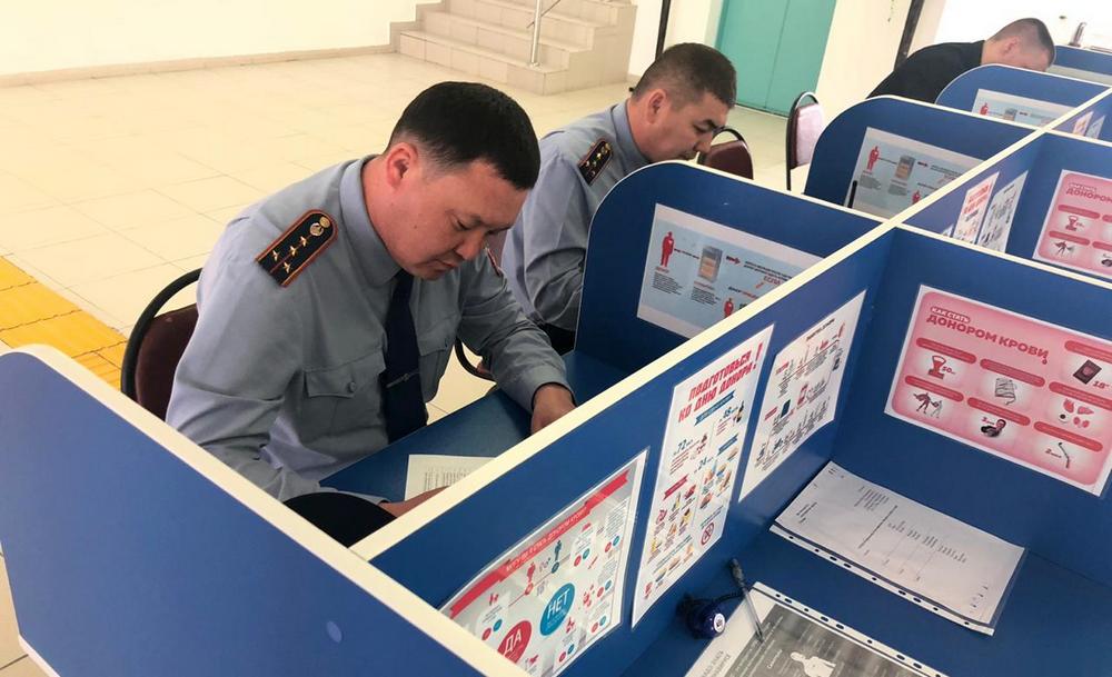 В эту среду, 25 марта, около 30 сотрудников батальона патрульной службы управления полиции Актау и роты патрульной службы отдела полиции Мунайлинского района стали добровольными донорами.