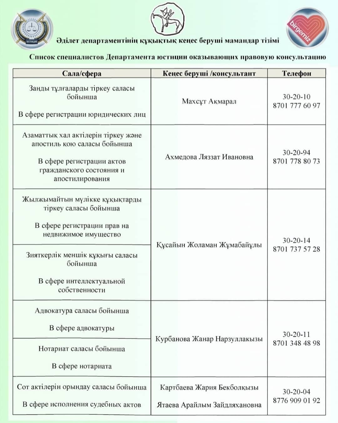 - Также, в связи с переходом на дистанционный режим работы на период чрезвычайного положения, ответы на вопросы касательно деятельности департамента и его структурных подразделений можете получить от руководителей соответствующих отделов либо управлений по номерам, указанным в таблице либо через мессенджер WhatsApp, - отметили в департаменте юстиции региона.