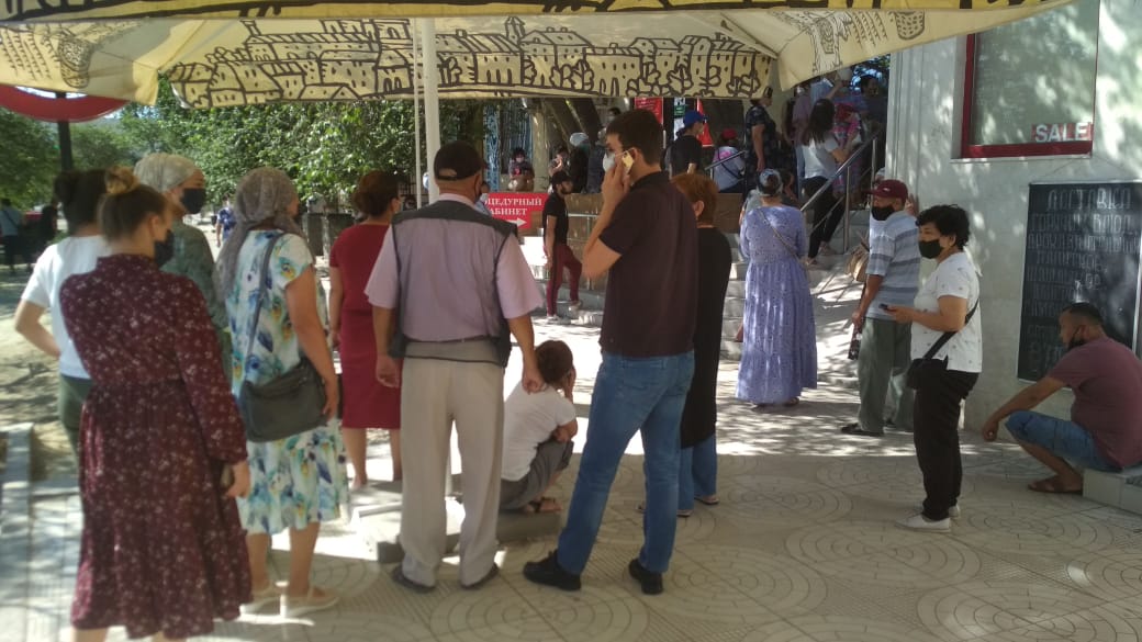 На кадрах видео видно, как люди стоят в длинных очередях за медпрепаратами.