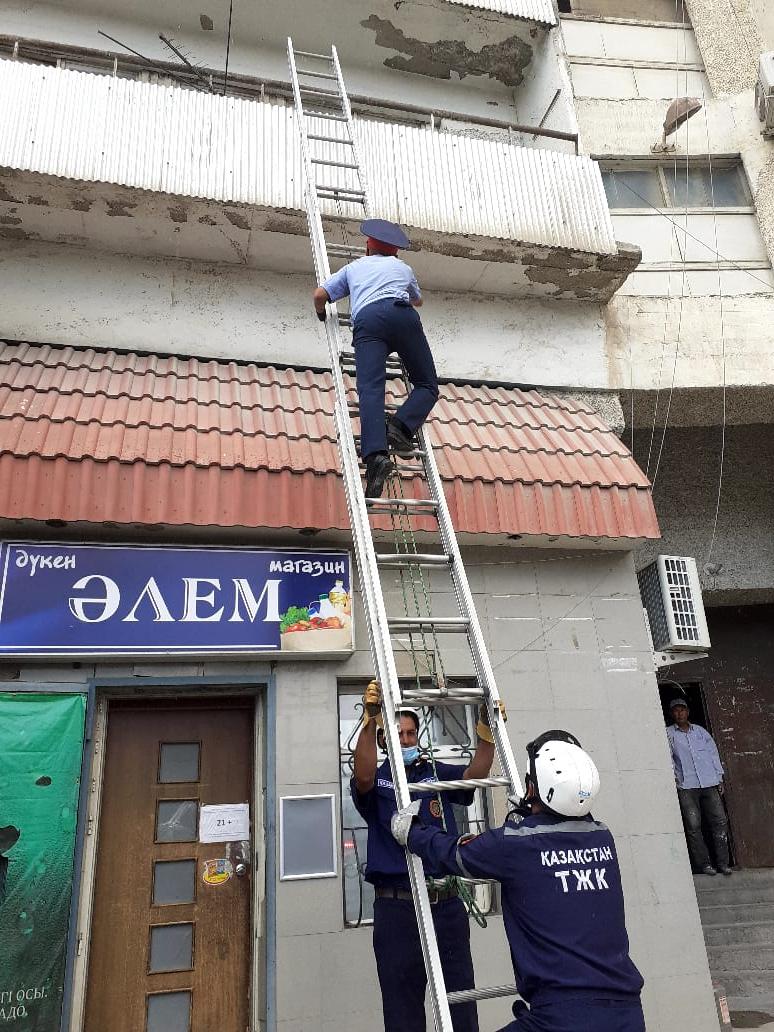 Примерно в 14:09 24 августа спасателями была оказана помощь сотрудникам полиции в доме №7 11 микрорайона Актау. Они установили треёхколенную лестницу на балкон квартиры, расположенной на первом этаже. Благодаря этому стражи порядка смогли войти в квартиру.