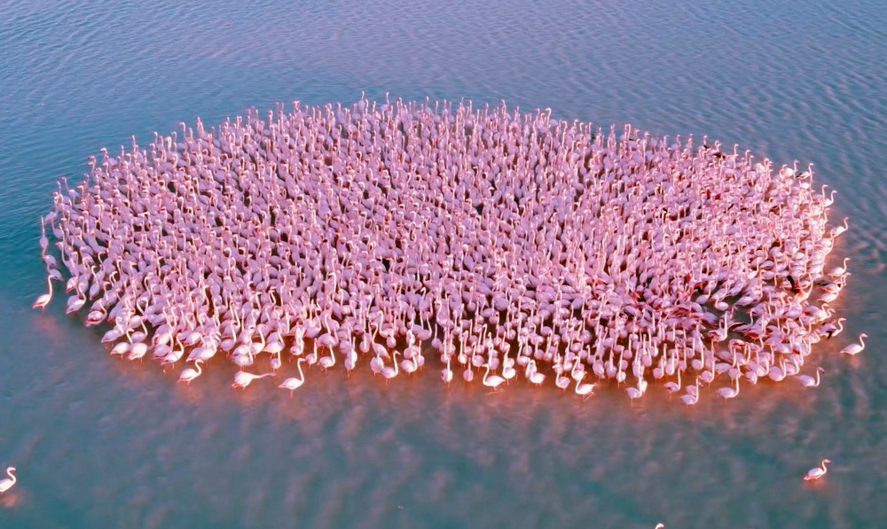 Зря он так близко подлетал к птицам. Видно же, что они пугаются жужжащей над их головами хрени. Штрафовать на первый раз не надо, конечно, но предупреждение выписать стОит. Если каждый, у кого денех хватило на дрон побежит сейчас снимать и шугать фламинго, то они очень скоро улетят оттуда. И больше не прилетят...