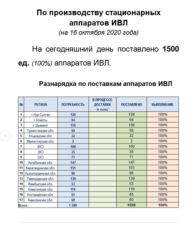 Ранее на брифинге в службе центральных коммуникаций Республики Казахстан Серикбай Трумов заявил, что аппаратов ИВЛ Biyovent в регион не поступало.