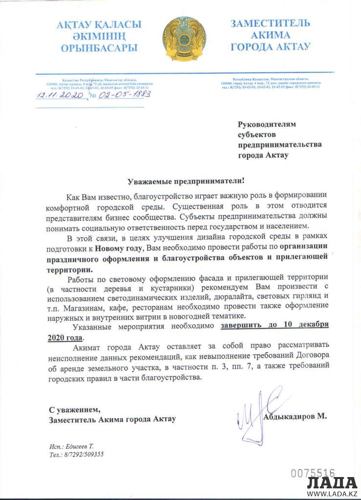 "ТРУТНИ города обязали предпринимателей Актау организовать праздничное оформление к Новому году"