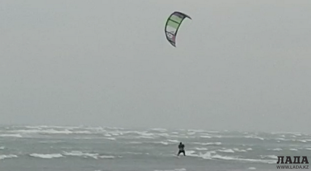 Для кайтсёрферов подвернулась возможность получить адреналин на Каспийском море в Актау, в районе Приморского.
