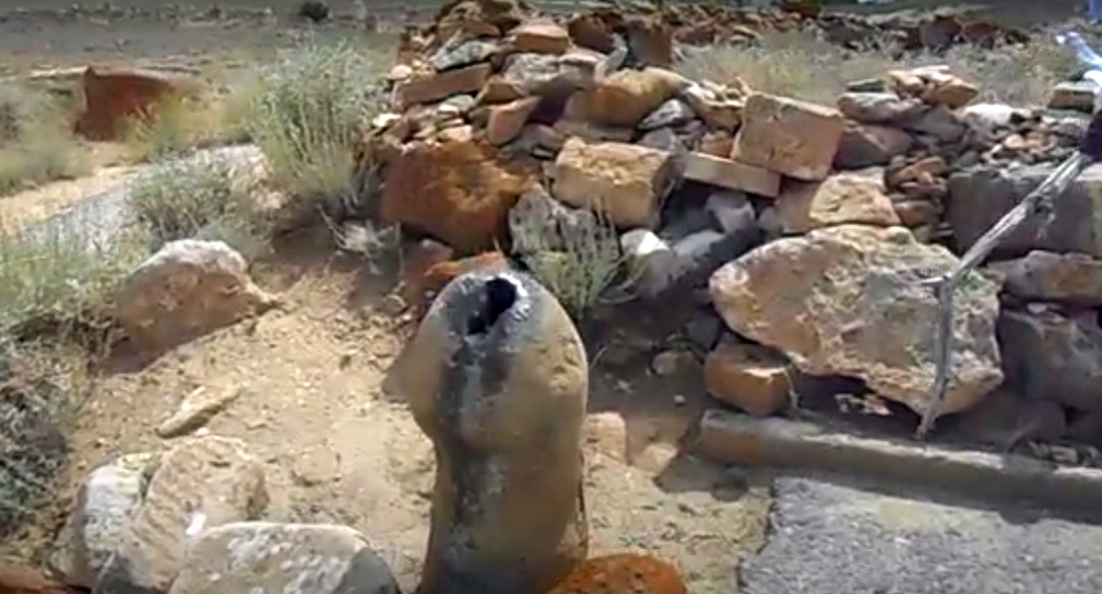 В этом году Дауир Шакиржан снова побывал на этом месте, но священного культового камня не оказалось. Теперь же здесь установили железную емкость для сбора средств.