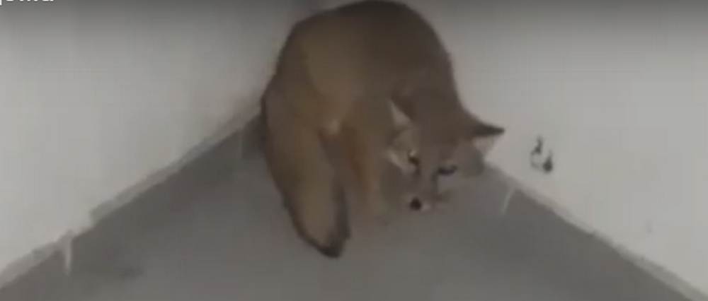 На записи видно, как дикое животное пытается вскарабкаться на стены в поисках выхода.