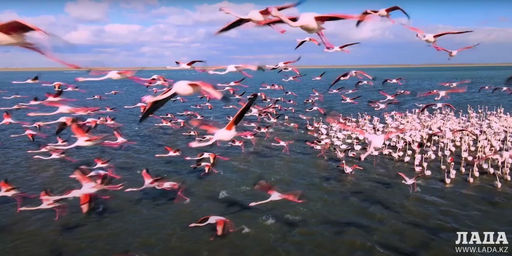 Жителю Актау удалось снять на видео больше тысячи фламинго, которые обитали на озере Караколь. По словам видеооператора, не спугнуть пернатых получилось благодаря использованию дрона небольшого размера.
