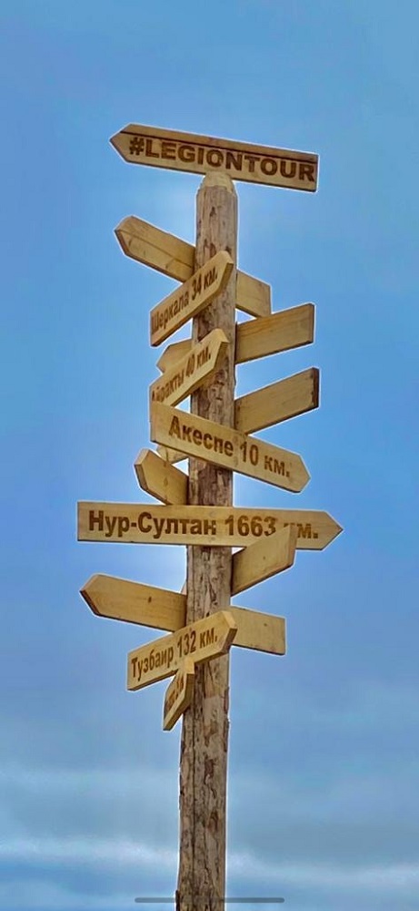 Указатель воздвигли на смотровой площадке Долины шаров 26 марта. Стрелки указывают на наиболее известные и популярные у туристов достопримечательности Мангистау.