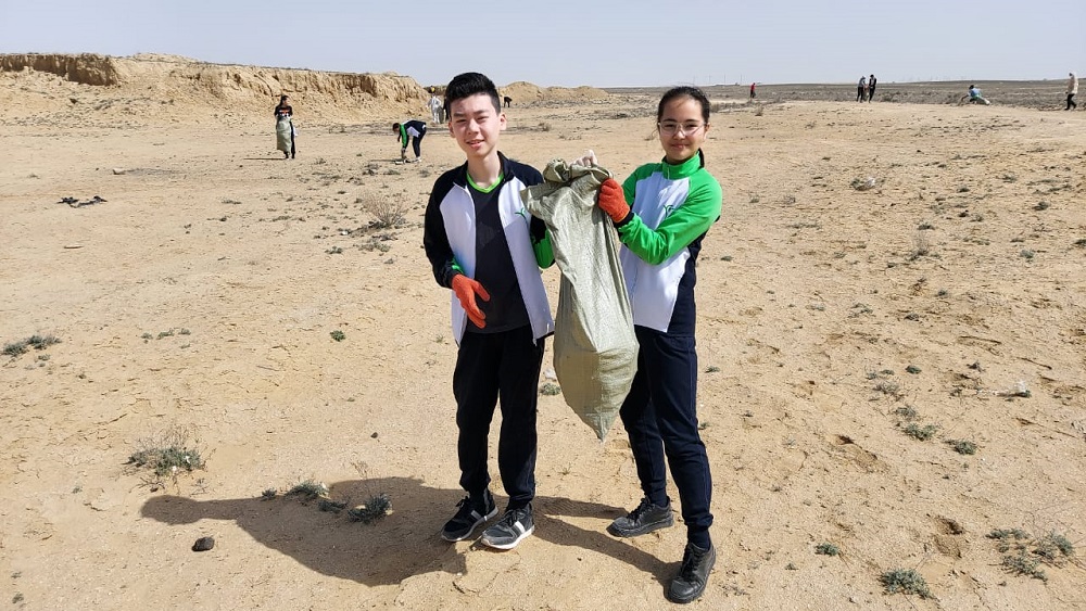 По словам Бахытгуль Жаксылыковой, координатора по экологии НИШ, ученики школы уже не первый год участвуют в уборке мусора.