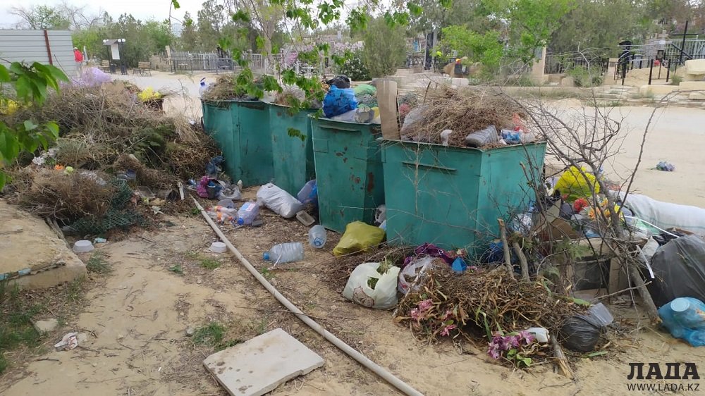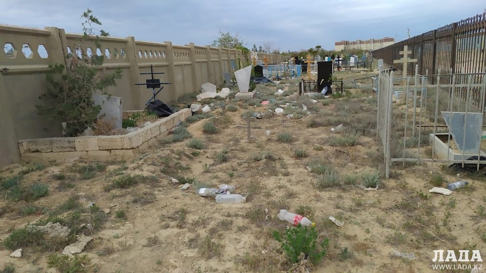 Корреспонденты Lada.kz сняли на видео мусор на городском кладбище Актау сегодня, 29 апреля.