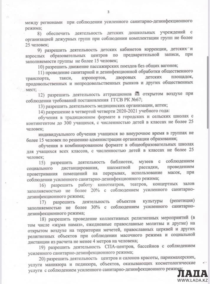 В нем говорится, что с 9 мая разрешено проведение спортивных мероприятий со зрителями при заполняемости не более 15 процентов. Объектам общественного питания разрешено работать до 24:00 часов при заполняемости зала не более 50 процентов, но не более 50 мест. Разрешена работа торговых центров, рынков, кинотеатров, объектов культуры, салонов красоты и других объектов предпринимательства.