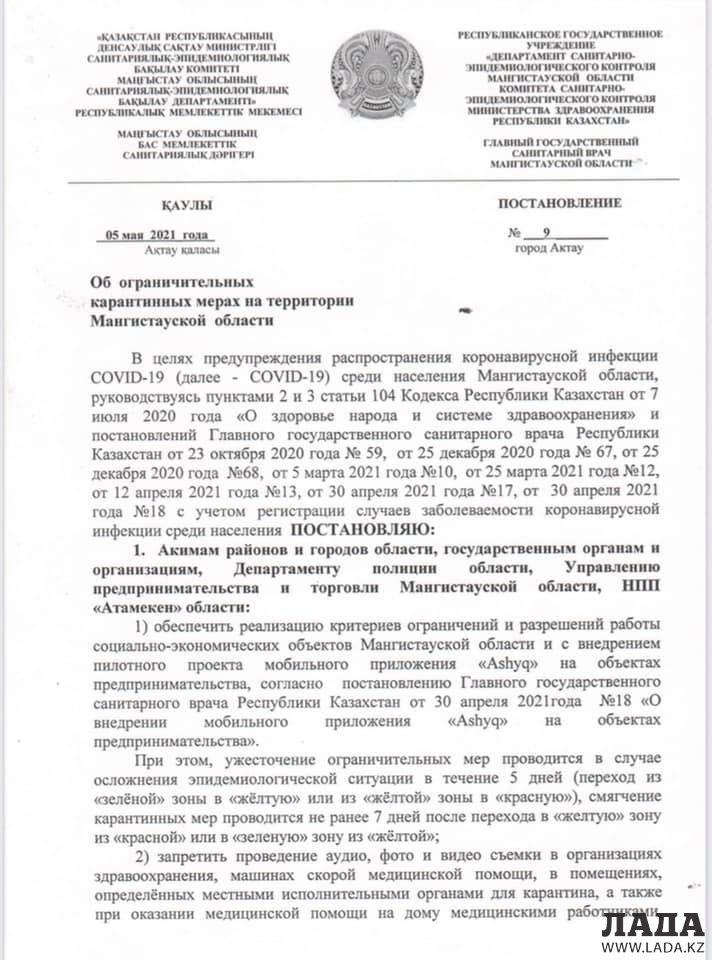 Новое постановление обуликовали в Центре общественных коммуникаций Мангистауской области.