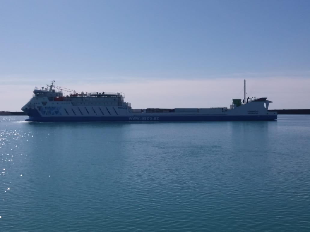 Головной пассажирский железнодорожно-автомобильный паром проекта CNF18C «Азербайджан», который 7 мая 2021 года отправился из порта Баку, расположенного в Аляте, прибыл в порт Курык 8 мая,