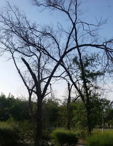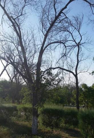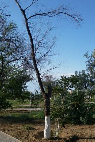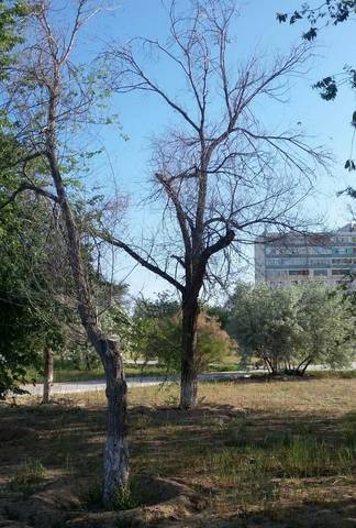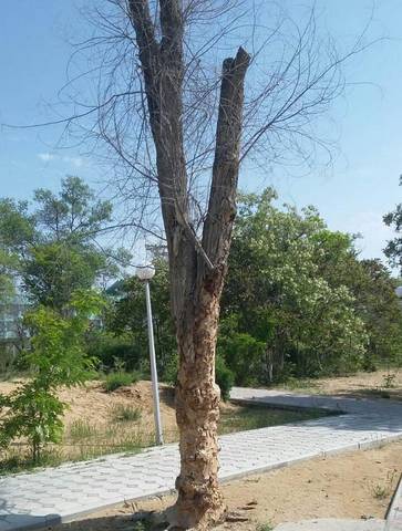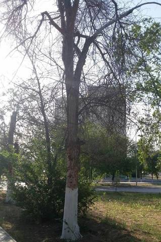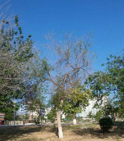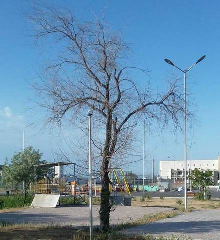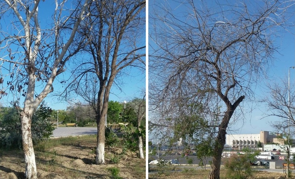 Местная жительница Виктория Мельникова запечатлела на фото сегодня, 12 мая, как массово погибают деревья в парке «Акбота».