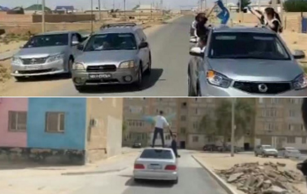 Так, 25 мая, в Сети было опубликовано видео с мини-кортежом выпускников, где водители трёх автомобилей нарушили правила дорожного движения в посёлке Жетыбай Каракиянского района. Из окон движущихся автомобилей вылезли выпускницы, размахивающие лентами.