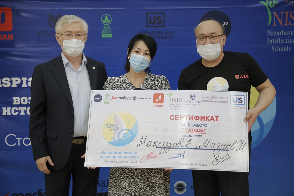 - Ведущие ВУЗы Казахстана предоставили образовательные гранты лучшим разработчикам. Казахско-Британский технический университет в Алматы пригласил на бесплатное обучение Андрея Тимонина из Интеллектуальной школы Актобе, Диасали Керим из NIS Кокшетау, а также победителя «Caspian Startup - 2021» Мердана Акыжанова из Туркменистана. Грант в Yessenov University достался Нуртасу Башееву из NIS Актау, а в Атырауский университет нефти и газа имени Сафи Утебаева приглашены обучаться авторы восьми проектов – ученики Интеллектуальных школ Даниал Сагимбаев, Тимур Сапаев, Асель Ошан, Ерлан Туралы, Бердикул Мухит и Жаныбек Бозбаев, а также Ареф Адай и Райымбек Орынбай из СОШ №10 Актау и Асылхан Кошанов из Кокшетауского IT-лицея имени Аль-Фараби. Проект Ерлана Туралы из Интеллектуальной школы Актау по теме «Hydropanel» оценили специалисты Eco Waste Aqtau, которые поощрили ученика планшетом. Также, в рамках конкурса участники пройдут стартап-курс от тренеров международного технопарка «Astana hub», - отметили в в пресс-службе образовательного учреждения.