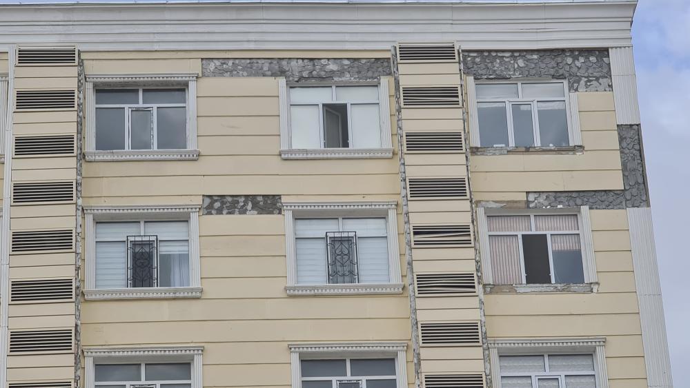 произошла в другом жилом доме Актау. Позже жители сообщили о том, что обшивка там упала во