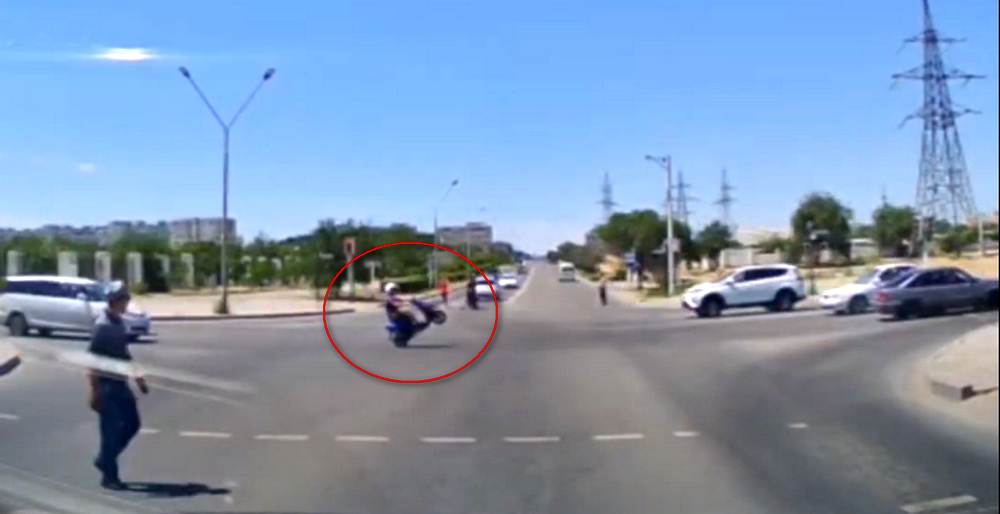 Опасное вождение водителя двухколесной техники попало на видео 15 июня на перекрёстке между 8, 10, 11А и 23 микрорайонами.