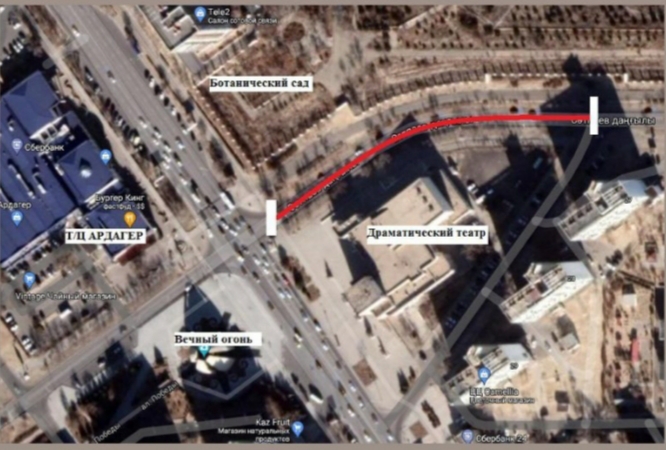 Участок дороги между ботаническим садом и музыкально-драматическим театром имени Н.Жантурина до 27 дома в 8 микрорайоне временно перекроют.