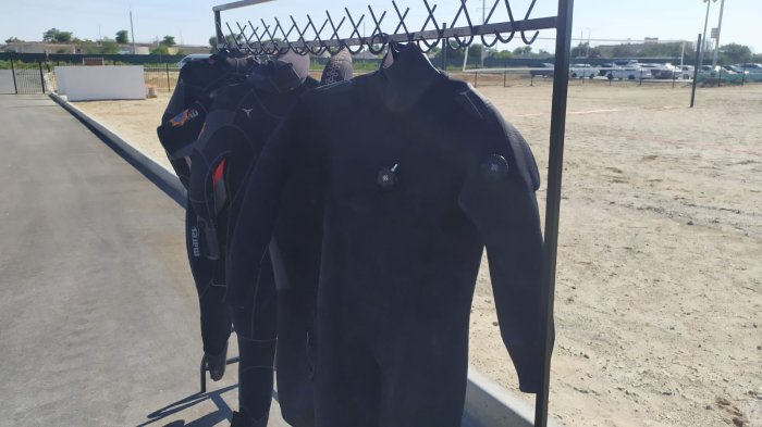 Водно-спасательная станция расположена на берегу Каспийского моря в микрорайоне «Приморский-1».