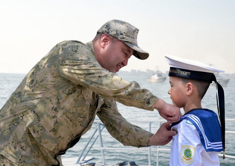 В ходе визита в Актау заместитель председателя КНБ РК, директор пограничной службы, генерал-лейтенант Дархан Дильманов лично наградил самого юного воспитанника военно-патриотического кружка «Жас шекарашы» Улана Толеухана.