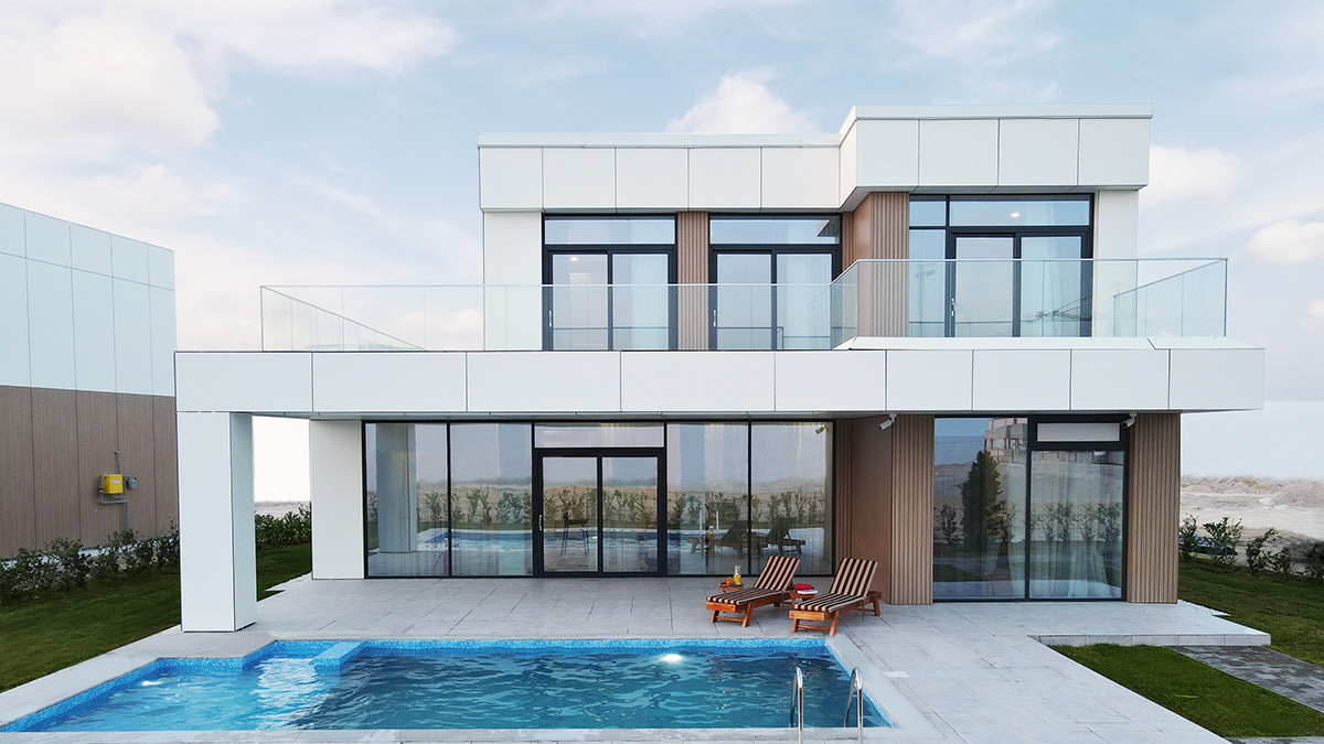 Своя вилла на берегу моря раньше была доступна только обладателям недвижимости за рубежом. С BI Group это возможно на родной земле. Причём, как внешне, так и по внутреннему наполнению, они не уступают иностранным объектам. Двухэтажные дома построены в европейском лаконичном стиле. Высота потолков первого этажа – 3,3 метра, второго – 3м. Наслаждаться видами Каспия можно через витражное остекление или с открытой террасы, а плавать - в море или в собственном бассейне. Все виллы выполнены в утончённом стиле минимализма. В отделке использованы материалы ведущих мировых производителей.