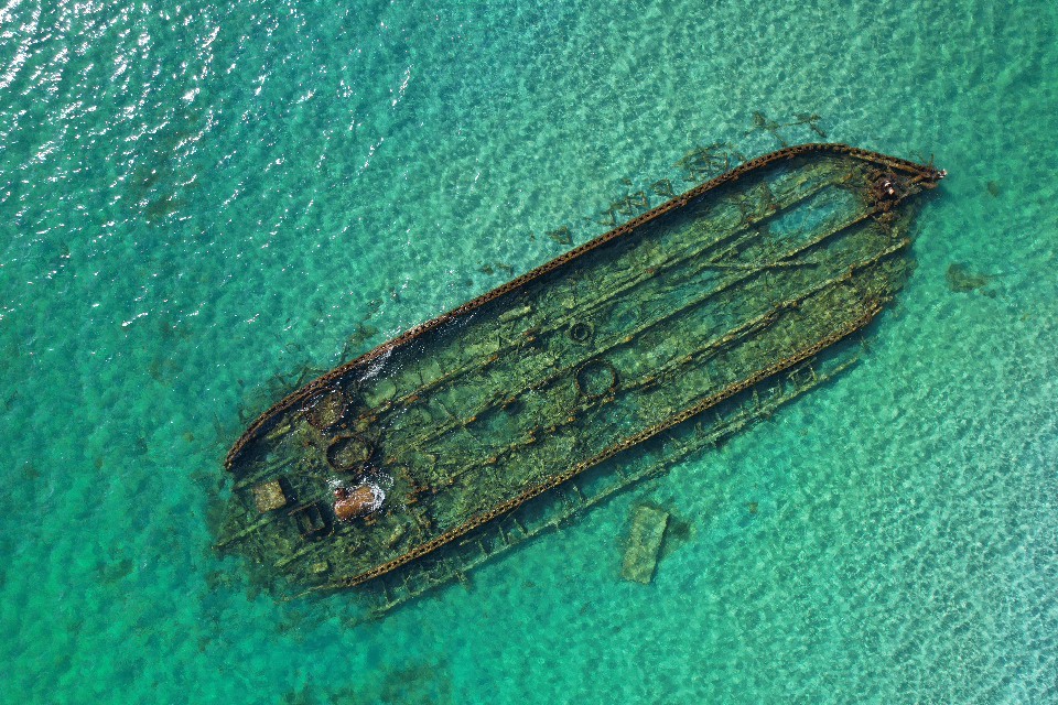 Это уже, достопримечательность, изюминка этого место, надо охранять их, это старые корабли царского времени, их искусственно затопляли чтобы использовать как причалы. Это не новые корабли с химий и мазутом, если даже что-то там было уже все вымелось, за столько времени.