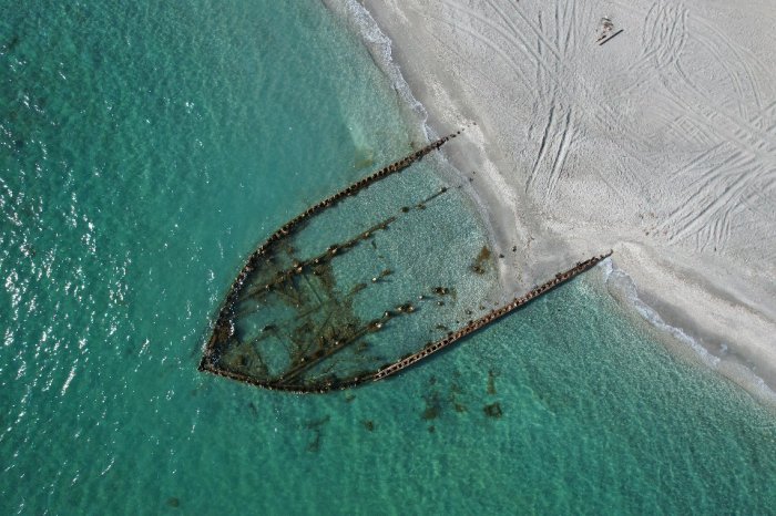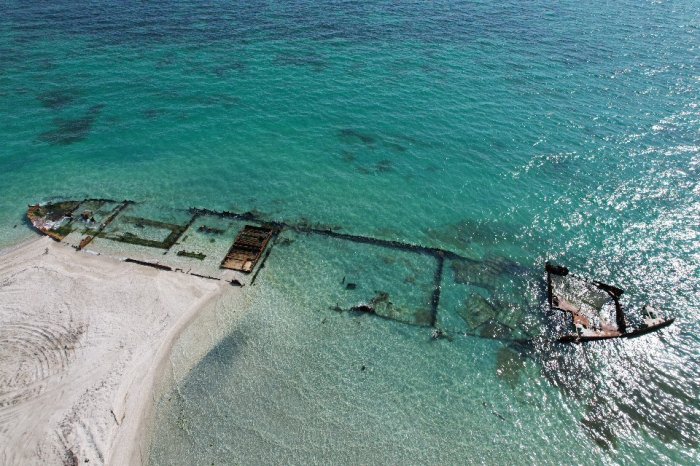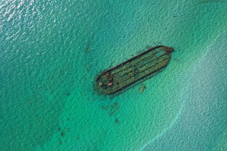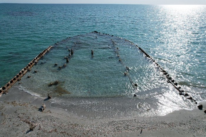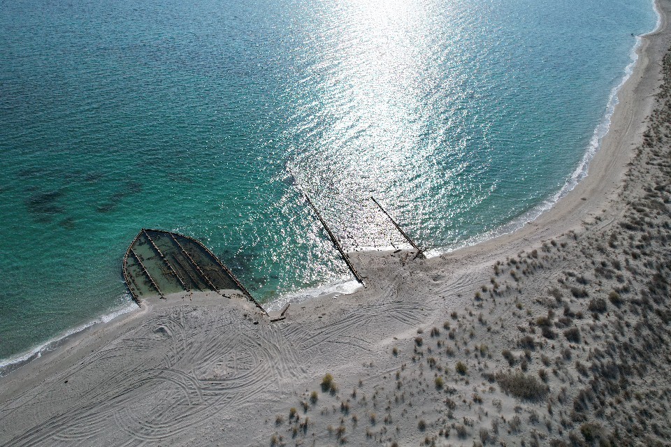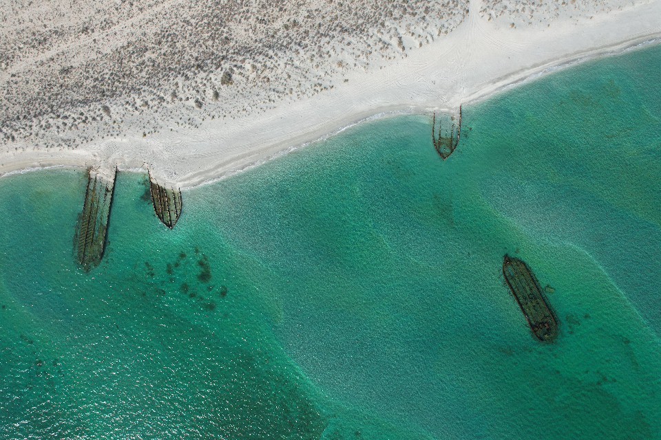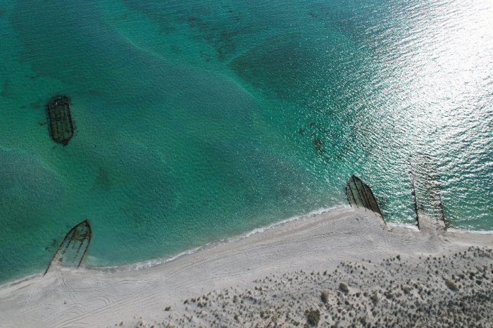 Сергей Хачатрян запечатлел на квадрокоптер останки кораблей вдоль побережья поселка Курык.