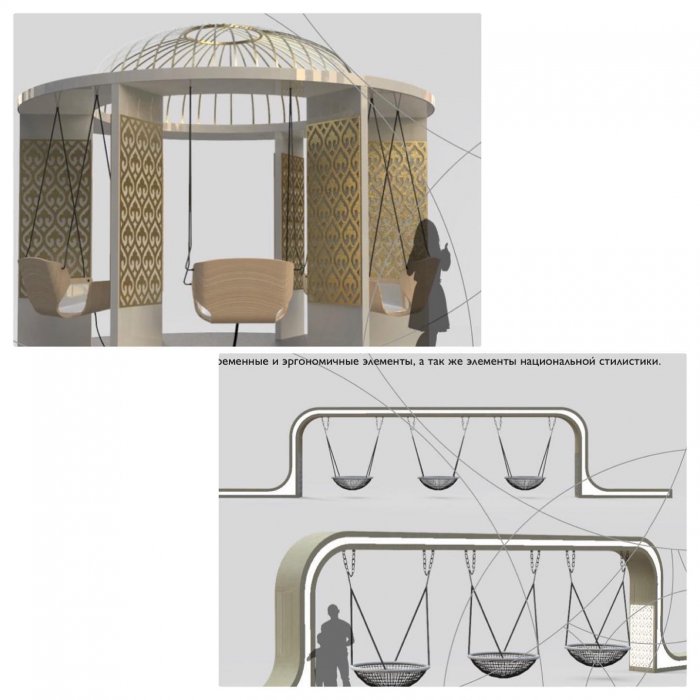 По данным акимата, в городе будут установлены декоративные малые архитектурные формы «Качели трио» и «Современная юрта».