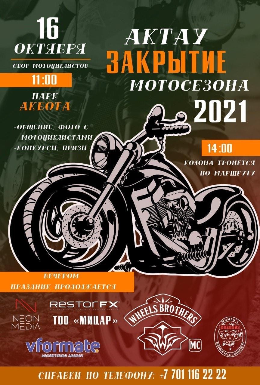 Байкеры Актау закроют мотосезон-2021 в ближайшую субботу, 16 октября. Организаторы приготовили для посетителей конкурсы и подарки. Принять участие предлагают всем желающим.