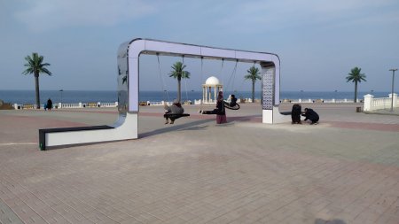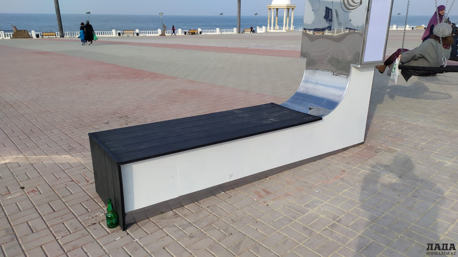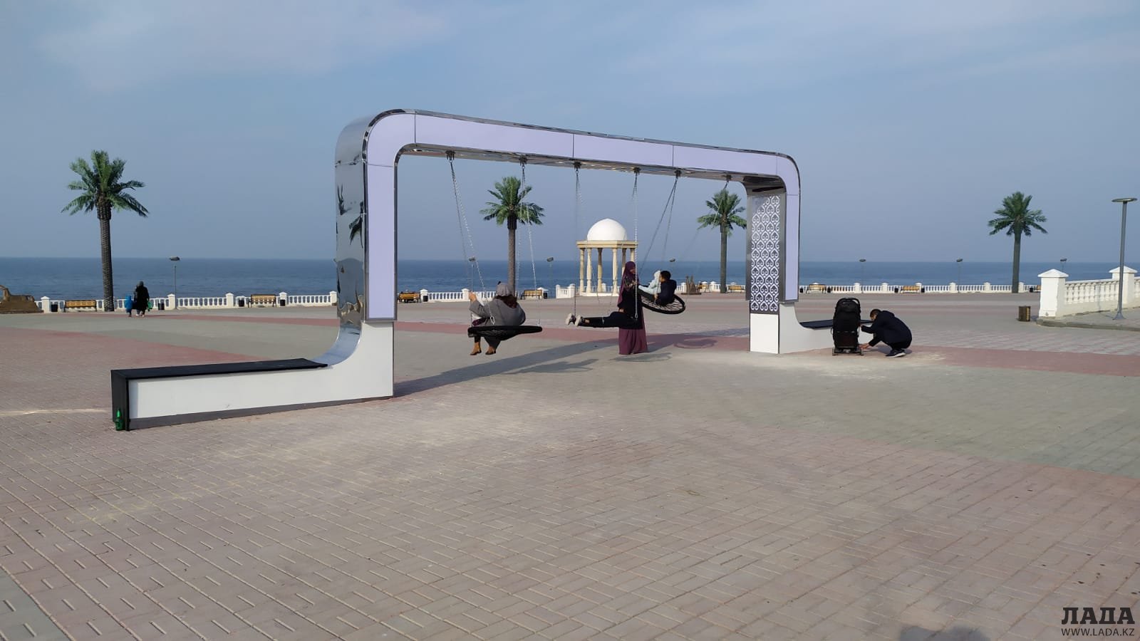 В Актау на набережной 15 микрорайона установили качели с тремя посадочными местами.