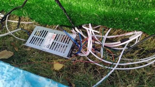 Электрическая проводка от инсталляции не изолирована и лежит прямо на газоне.
