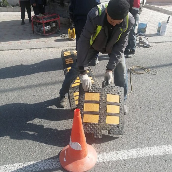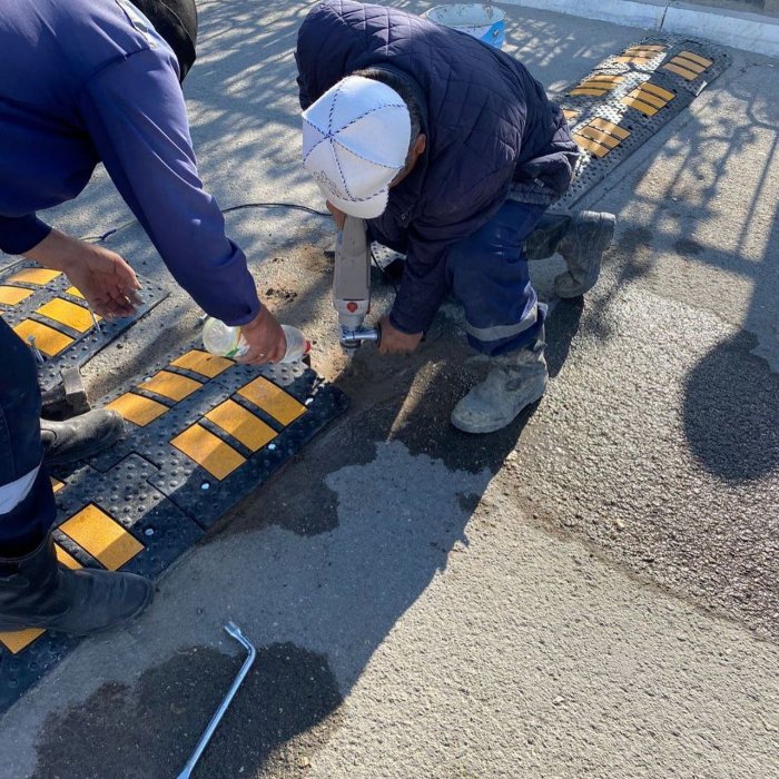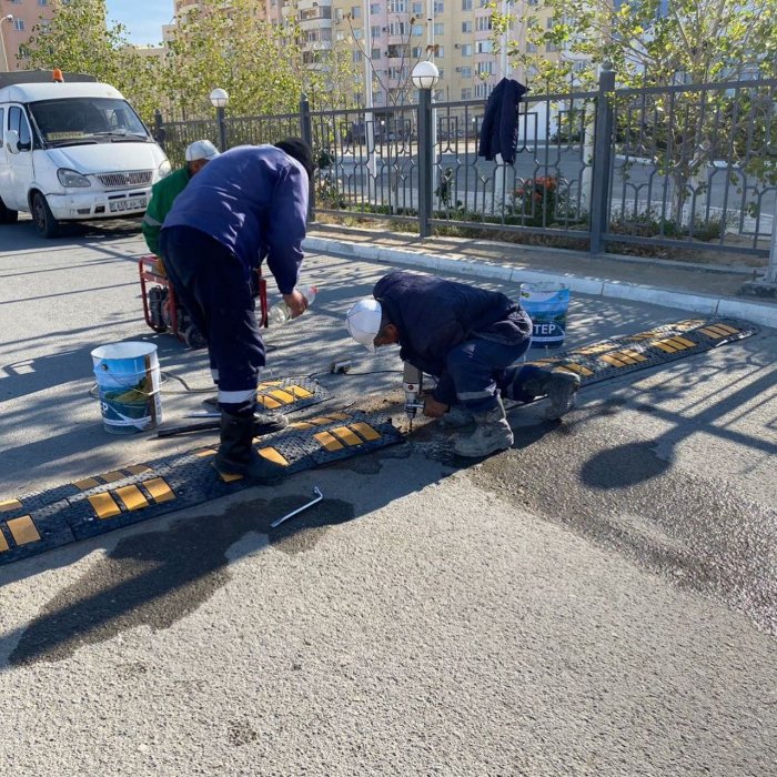 На основании обращений жителей города и в целях обеспечения безопасности граждан по поручению акима области устанавливаются «лежачие полицейские».