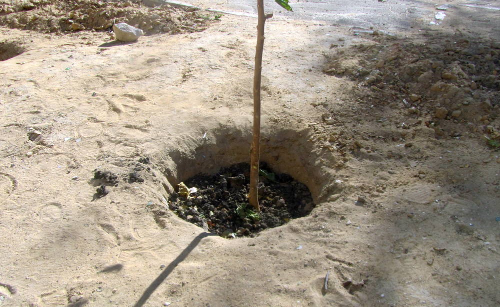 Он выкопал глубокие лунки и высадил три метровых саженца.