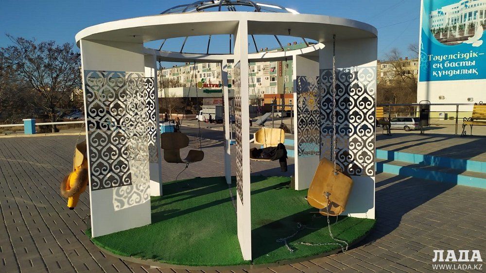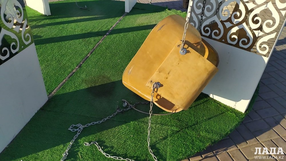 «прилетела» акиму Актау из Африки. Новые качели в центре Актау начали