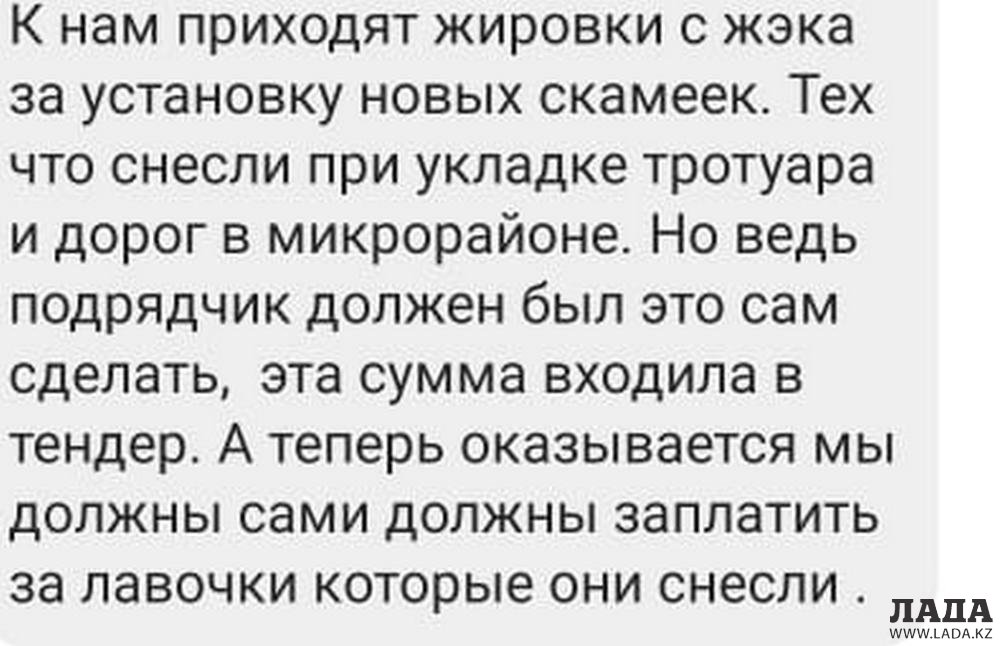 - В смете не было указано, чтобы подрядчик вернул скамейки на место. Например, в 28 микрорайоне тоже проводится благоустройство, и жители самостоятельно собрали деньги и установили за свой счет, – сообщили в отделе ЖКХ Актау.