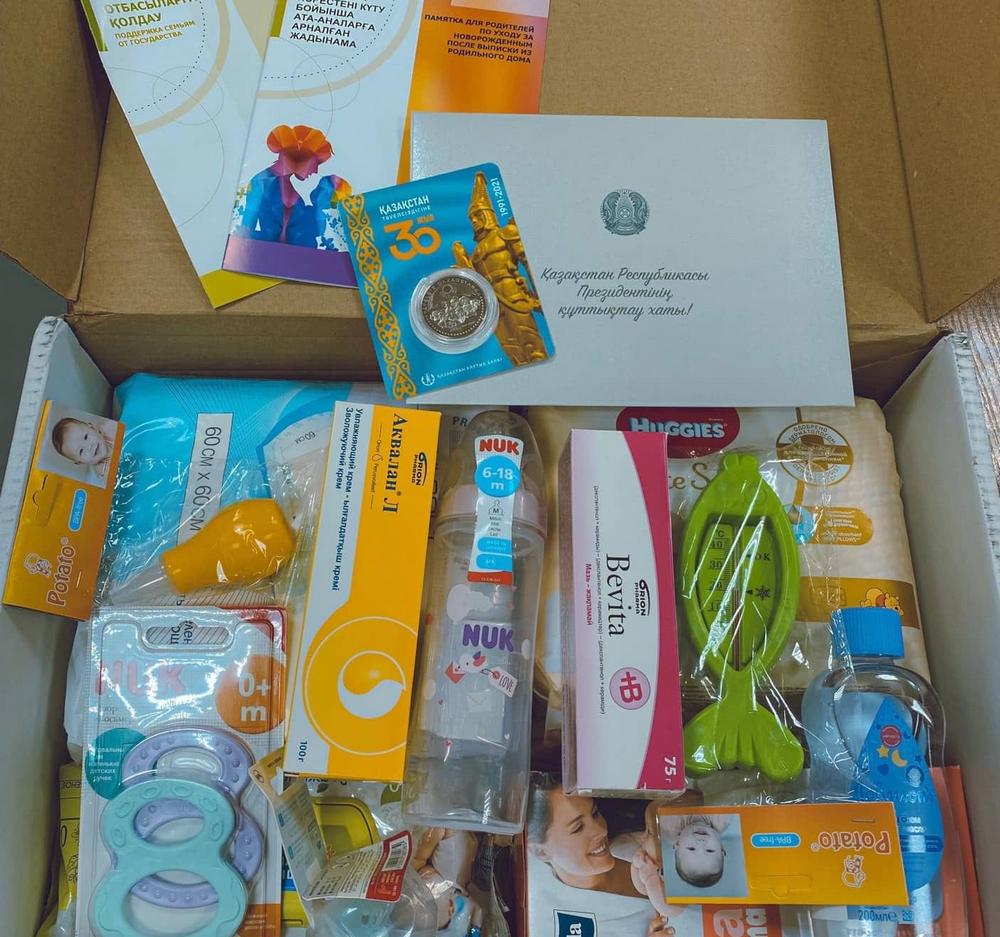 Подобные памятные боксы получили более двух тысяч детей в стране, которые родились в День Независимости.