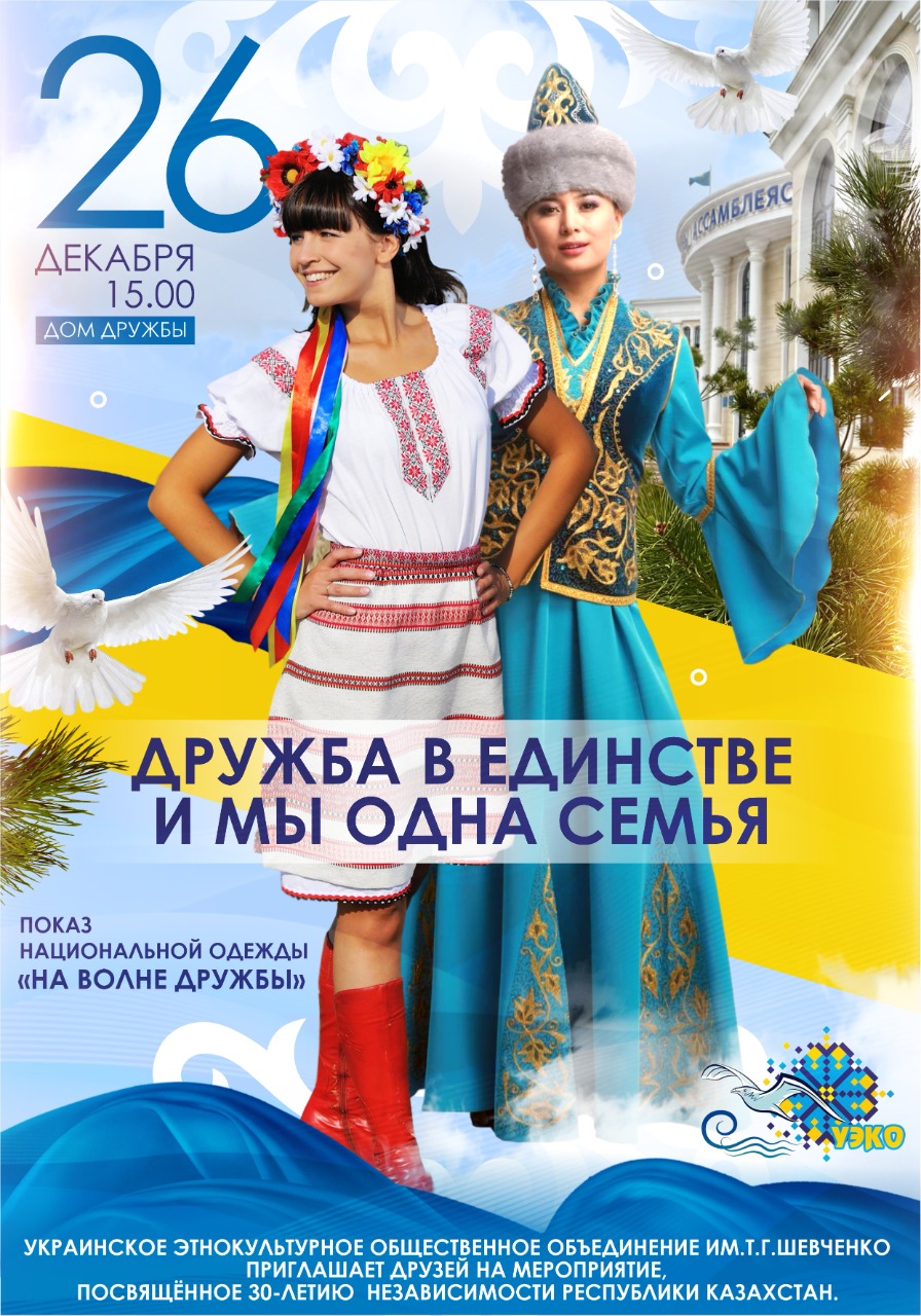 - Украинское этнокультурное объединение имени Т.Г. Шевченко приглашает вас на показ национальной одежды «На волне дружбы»! Мы будем очень рады разделить с единомышленниками этот праздник красоты и самобытности! Мы познакомимся с особенностями культуры народов, населяющих наш регион, поприветствуем друг друга и в очередной раз продемонстрируем, как многообразен и одновременно с этим един народ Казахстана, - сообщили в объединении.